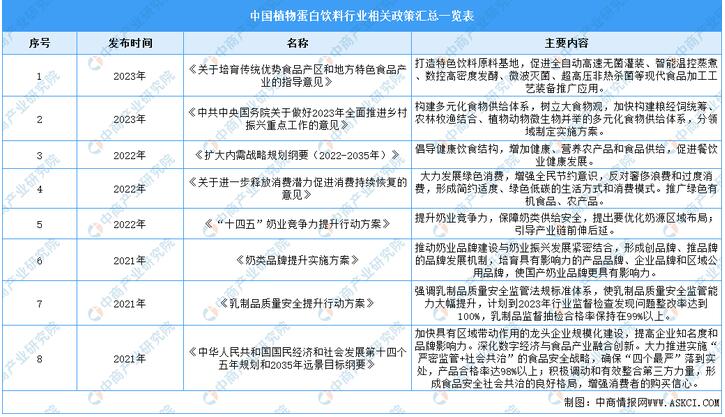 与此同时,我国政府对植物蛋白饮料行业的发展也始终高度重视。从出台的《关于培育传统优势食品产区和地方特色食品产业的指导意见》、《扩大内需战略规划纲要(2022-2035年)》、《关于进一步释放消费潜力促进消费持续恢复的意见》等一系列政策中,也能看出其的重视程度。