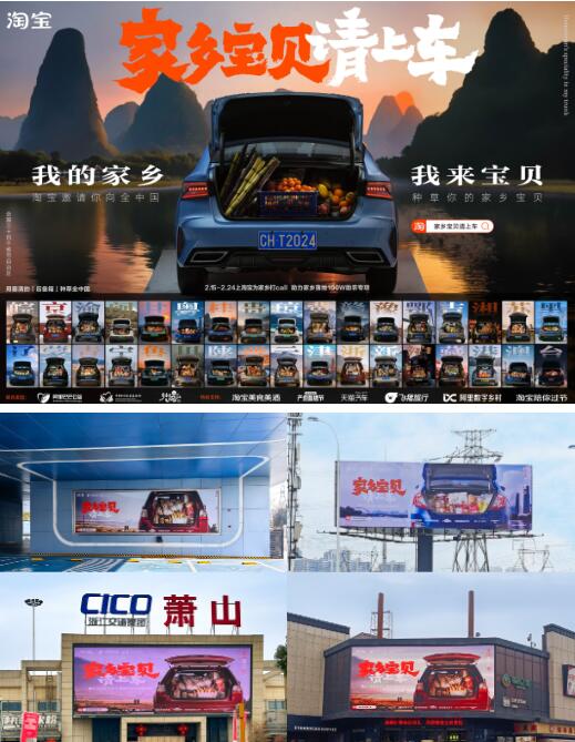 同一时间,淘宝还为34个家乡省市自治区分别制作了专属特色海报,将各省市家乡宝贝的风采悉数展现。春节期间,这些充满家乡特色的海报出现在高速高炮、服务区、高铁站和机场等返程场景,让家乡宝贝拥有更大程度曝光,同时也在返程高峰期构成了路上一道靓丽的风景线,吸引来往行人纷纷拍照晒图,为自己的家乡海报打call宣传。