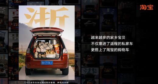 2月15日,淘宝官方发布一支「家乡宝贝请上车」品牌公益片,联合阿里巴巴公益、中国乡村发展基金会以及国家文旅部的乡村网红办,正式官宣公益活动开启。短片中,一个个后备箱被各地的特产填满,虽然后备箱的空间有限,但承载了家人无限的爱和嘱托。