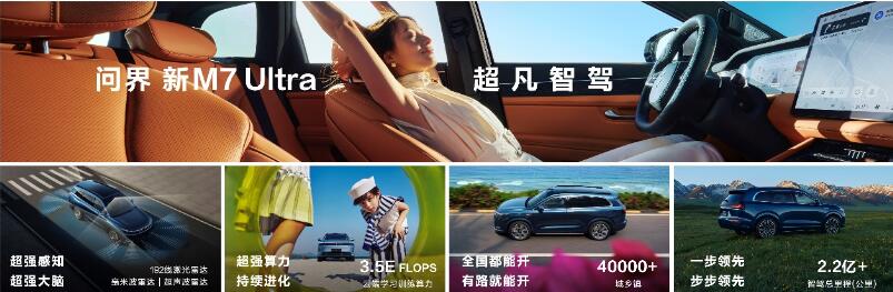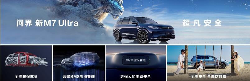 在此基础上,问界新M7 Ultra的智驾能力也再度进阶,升级搭载业界领先的192线激光雷达,配备了3个毫米波雷达、11个高清摄像头及12个超声波雷达,探测精度和探测距离远超行业一般水平,全向防碰撞能力做到了“人无我有,人有我优”,在ADS 2.0高阶智驾系统加持下,问界新M7 Ultra不依赖高精地图,就可做到全国都能开、有路就能开,智驾更聪明驾驶决策更准确,行车更安全。