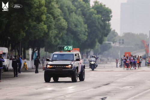 豫章故郡、赣水之滨,选手们近距离感受了英雄城南昌独特的历史韵味、丰富的文化底蕴以及现代化建设的勃勃生机。每一位跑者激情奔跑的姿势与在 BAJA 赛场上彰显传奇精神的福特烈马引导车交相辉映、相得益彰。福特烈马,这款传奇越野车型以其硬派的越野基因和卓越性能,完美诠释了勇往直前、不畏艰难的马拉松精神。
