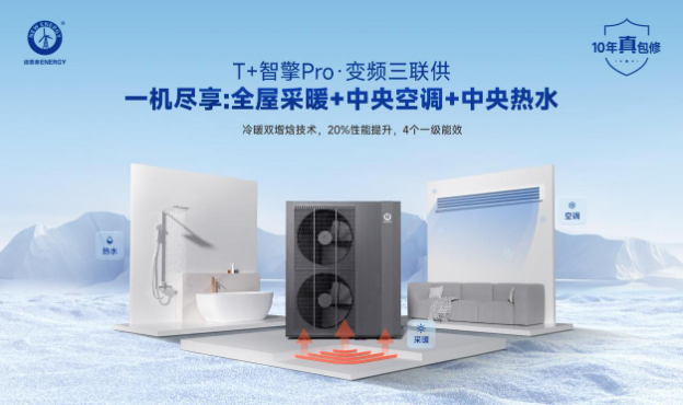 主打“冬暖夏凉+热水供应”一体化解决方案,代表机型包括T+智擎Pro变频三联供、U+双能TOP旗舰版、淳热纯暖机等。该系列可替代传统空调和锅炉,省电50%以上,恒温舒适且安全环保,适合家庭住宅、别墅等场景,可以实现采暖、制冷、热水三重需求。