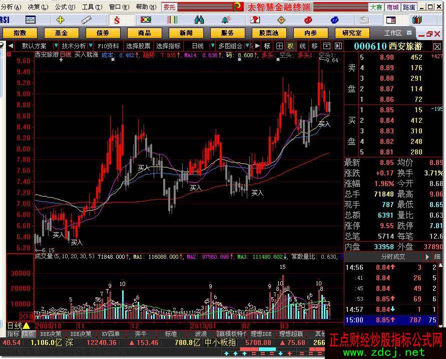大智慧抄底逃顶买入就涨指标公式主图实例图解: