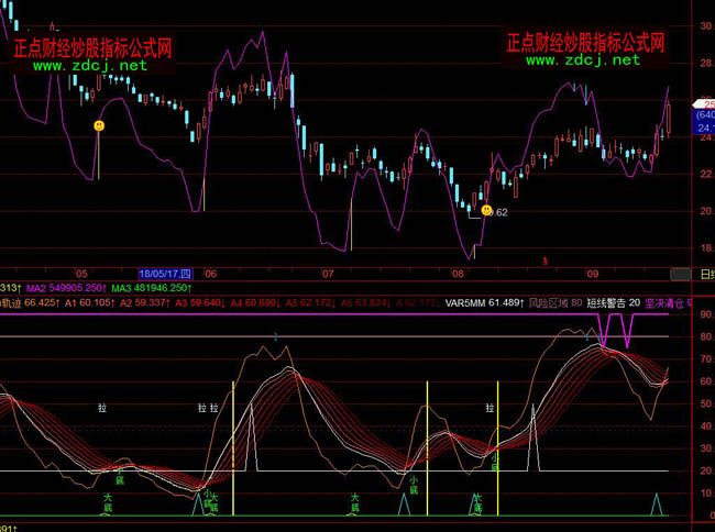 指导线:重心+GAO*(RSI-0.5),COLORMAGENTA,LINETHICK1;