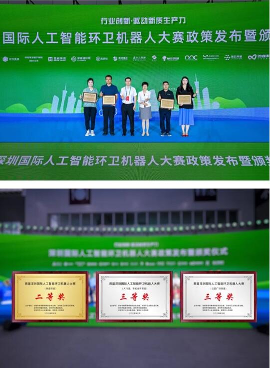 经过两天的精彩激烈的竞赛角逐,玉禾田成员企业坎德拉荣获深圳国际人工智能环卫机器人大赛辅道场景二等奖,广场公园、人行道非机动车道场景三等奖。