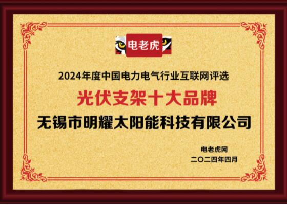 无锡市明耀太阳能科技有限公司荣获“光伏支架十大品牌”荣誉称号