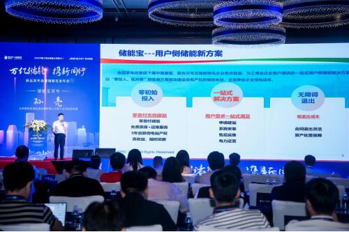 北京绿电荷储能源发展有限公司客户成功部总经理孙亮在演讲中表示:针对用电企业储能自建站的三大痛点——初投资金承压、技术能力匮乏、闲置设备退出受限问题,“储能宝”产品凭借“零投入、低月供”金融方案,用户使用5年后即可获得电站产权,期间可享受免费质保和运维服务,拥有提前买断或退出的权利,为用户提供电力运营,可一站式满足工商业企业建设自有产权的储能电站需求,全面降低用户全生命周期用电成本。“储能宝”不仅可助力用户实现零投入无忧建站,还能保障用户无障碍退出,从而进一步降低用户投资风险。