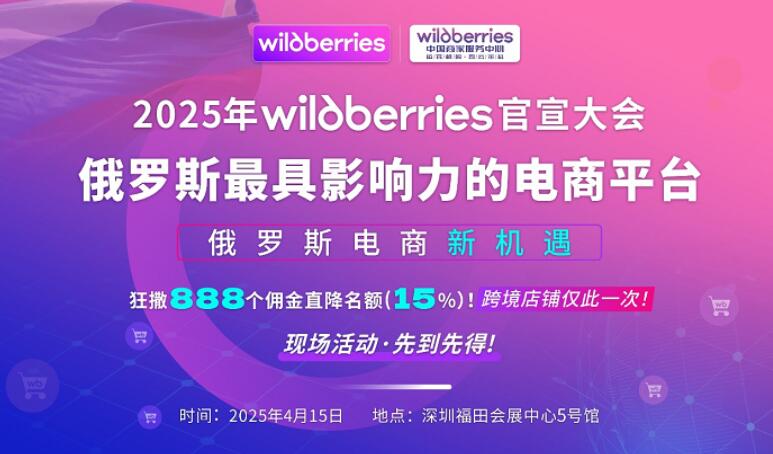 为助力中国企业扬帆出海,开拓俄罗斯及中亚市场,野莓WB(Wildberries)电商平台将于2025年4月15日在深圳福田会展中心举办正式开放后的首场官宣大会。