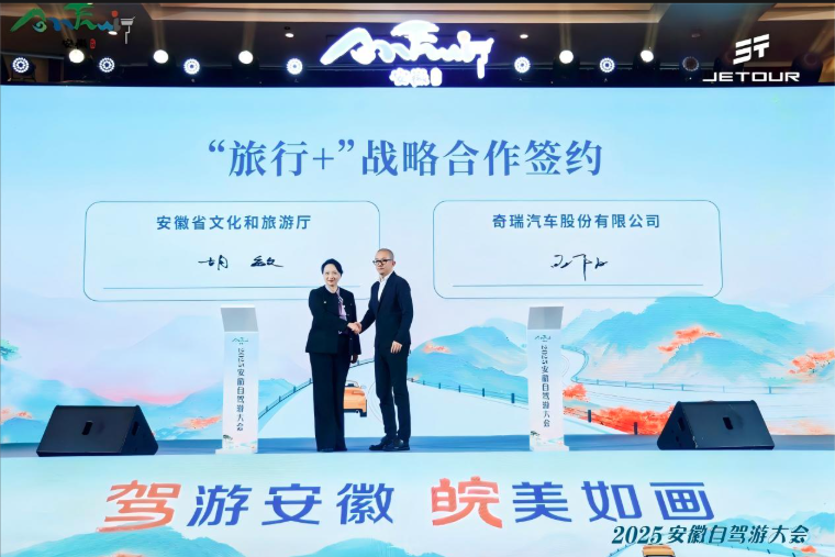 本届大会上,捷途汽车国内营销中心副总经理王阳作“游在安徽,捷途驿站新玩法”的主题分享,并与安徽省文化和旅游厅签署战略合作协议。在11月8日举行的“2025安徽自驾游大会发车仪式”上,50台捷途汽车组成的领航车队气势如虹驶向征途,象征安徽自驾游产业开启新征程。