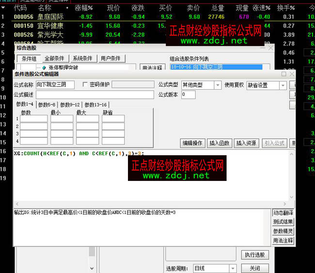 通达信连续向下跳空三阴K线选股公式更新时间:2018-10-16