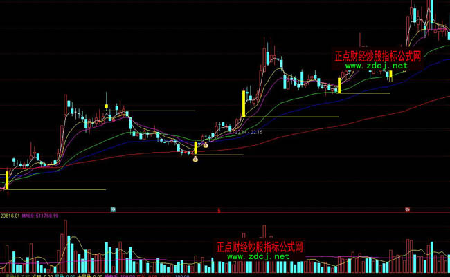 通达信综合黄金柱K线支撑操盘指标公式实例图解: