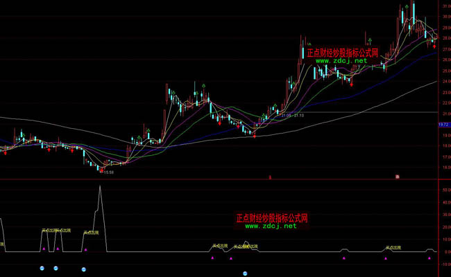 DRAWTEXT(CROSS(关注,1.2),关注*0.5-6,'▲'),COLORFF00FF;