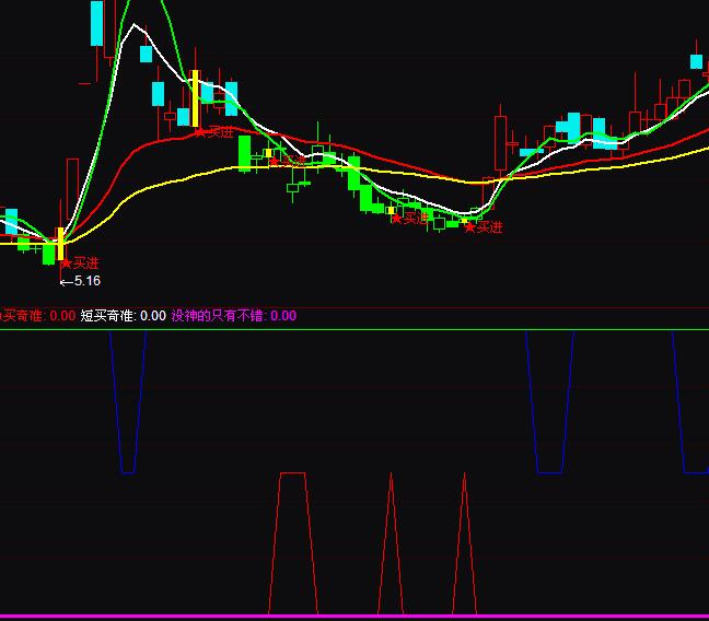 没神的只有不错:( IF(((动向趋势线 > 88) AND (神偷线 < 5.8)),80,0)),LINETHICK3,COLORFF00FF;