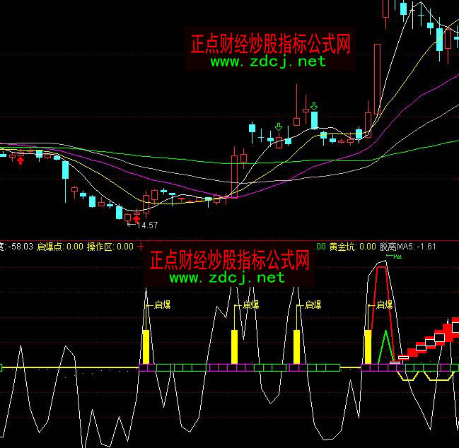 通达信十九强股价启爆点黄金坑指标公式实例图解: