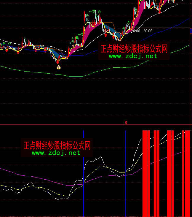跟踪: IF(VAR1,VAR4 AND CROSS(A,VAR2) AND B<0.6 AND VAR2>REF(VAR2,5) AND VAR2<0.6 AND (MA(CLOSE,300)>REF(MA(CLOSE,300),2) OR MA(CLOSE,21)>REF(MA(CLOSE,21),21)),0),STICK,LINETHICK3,COLORBLUE;