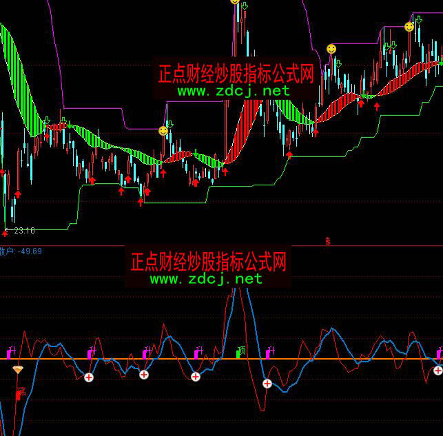 通达信主力雷达顶底指标公式实例图解: