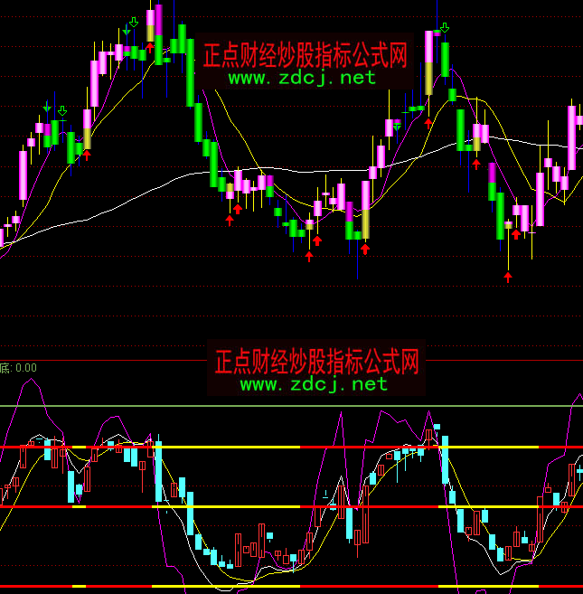 通达信优化KDJ带K线金叉指标公式实例图解: