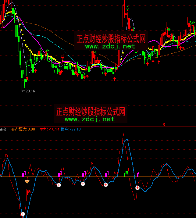 DRAWICON(CROSS(主力,散户) AND 主力<-10,主力,23);