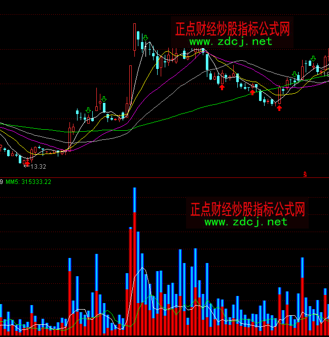 买:IF(CLOSE>OPEN,VAR1*(HIGH-LOW),IF(CLOSE<OPEN,VAR1*((HIGH-OPEN)+(CLOSE-LOW)),VOL/2)),COLORRED,POINTDOT ;