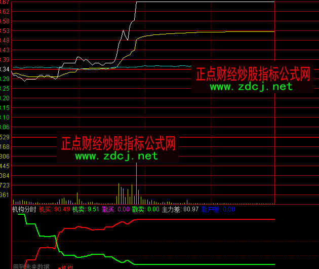 DRAWTEXT(主力差>0 AND REF(主力差,1)<=0,C*0.75,'●机构'),COLORRED;