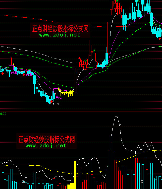 W:DRAWTEXT(CROSS(VARCC,VARBB) AND VARCC>58,VOL*1.2,'卖'),COLORWHITE;