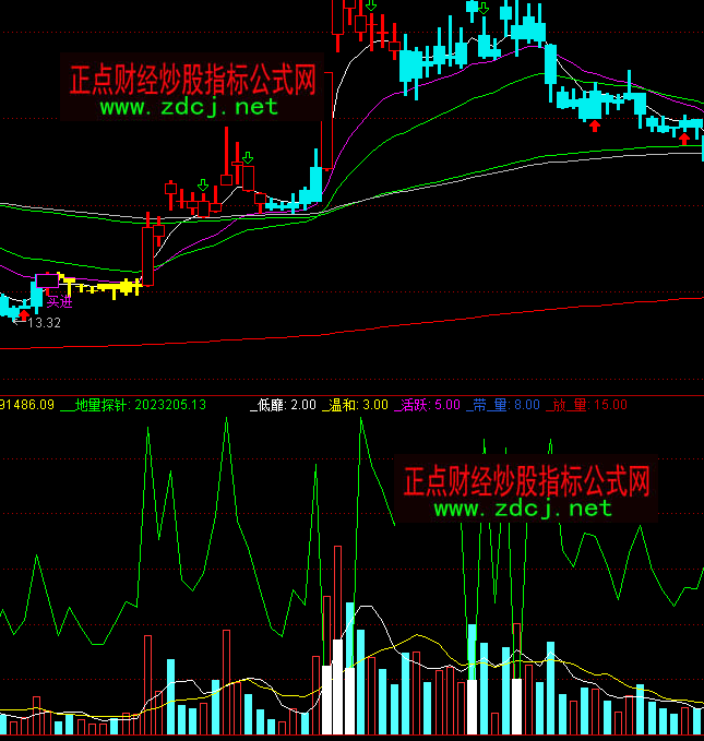 __地量探针:IF(VOL/CAPITAL>0.01,0,EXP(ABS(LOG(VOL/CAPITAL*100)))*3*V),COLORGREEN;