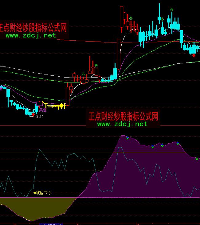 通达信股市冲浪波段买卖指标公式实例图解: