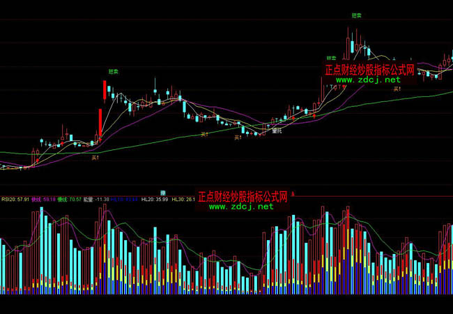 能量:IF(快线>慢线 OR 快线<慢线,AA,DRAWNULL),LINETHICK0;