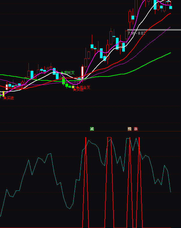 量比:V/(REF(MA(V,5),1)),LINETHICK0,COLORRED;