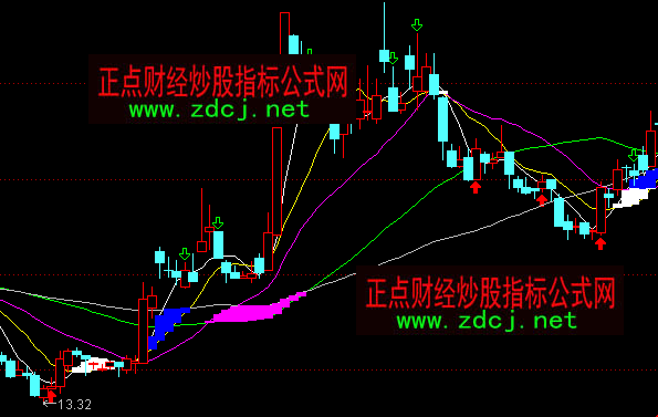 通达信红块出必大涨均线操盘主图指标公式实例图解: