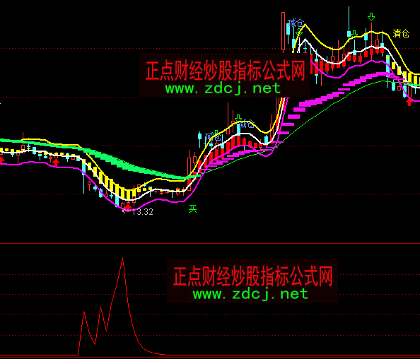 B:EMA(IF(LOW<=VARE,(VARD+VARF*2)/2,0),3)/618*VAR10,COLORRED;