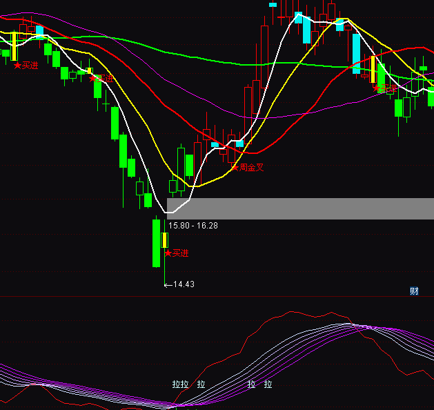 DRAWTEXT(CROSS(AA, A5) AND REF(AA,1)<34,REF(AA,1),'小'), COLOR00FF00;