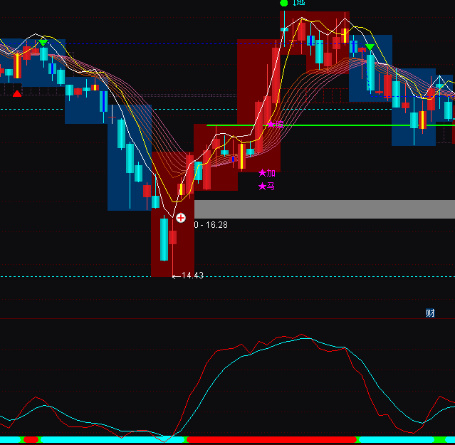 蓝卖: IF(VAR2<VAR3,10,DRAWNULL),COLORFFFF00,LINETHICK9;