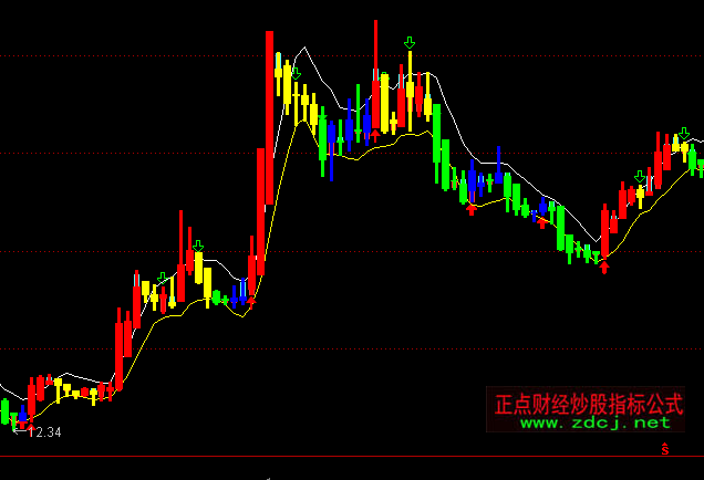 STICKLINE(XCLOSE>XOPEN AND VAR1>VAR2,XCLOSE,XHIGH ,0.5,0 ),COLORBLUE;