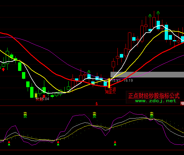 月金▲:DRAWTEXT(CROSS("KDJ.K"(9,3,3),"KDJ.D"(9,3,3)) ,0,'▲'),COLOR00FF00;