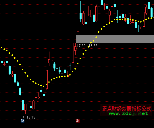 通达信圣灵石之黄金线主图指标公式 通达信圣灵石之黄金线主图指标公式: 圣灵石黄金线:(EMA(C,18)),POINTDOT,LINETHICK5,COLORYELLOW; 通达信圣灵石之黄金线主图指标公式实例图解: 通达信圣灵石之黄金线主图指标公式