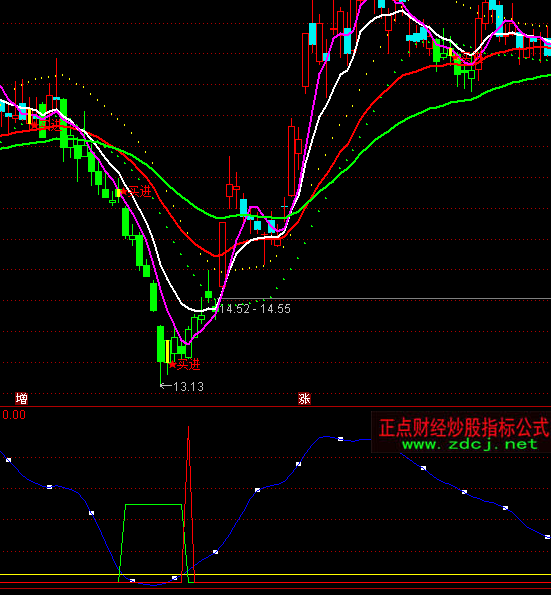 主力异动: IF(北斗星操盘线<=5,50,0), , COLORGREEN;