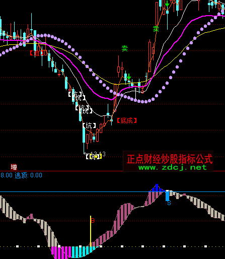 DRAWTEXT(CROSS(趋势,底部),50,'B'),COLORRED;