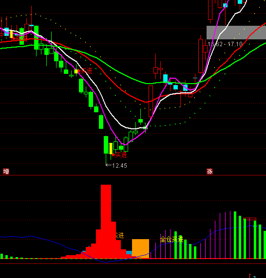 DRAWTEXT(CROSS(趋势线,VAR2)AND 趋势线>REF(趋势线,1)AND 趋势线<50,50,'全仓买进'),COLORYELLOW;