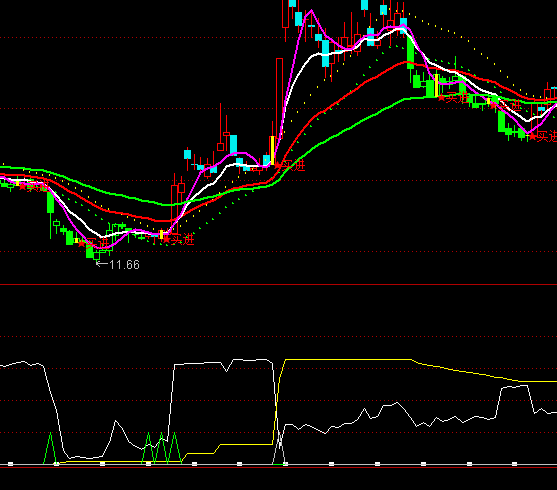 通达信调整结束吸筹指标公式实例图解: