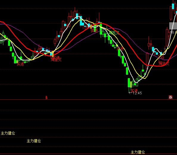 DRAWTEXT(指标王,L,'主力建仓'),COLORYELLOW;