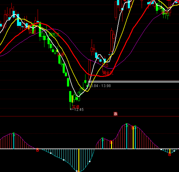 通达信财富分水岭买卖指标公式实例图解: