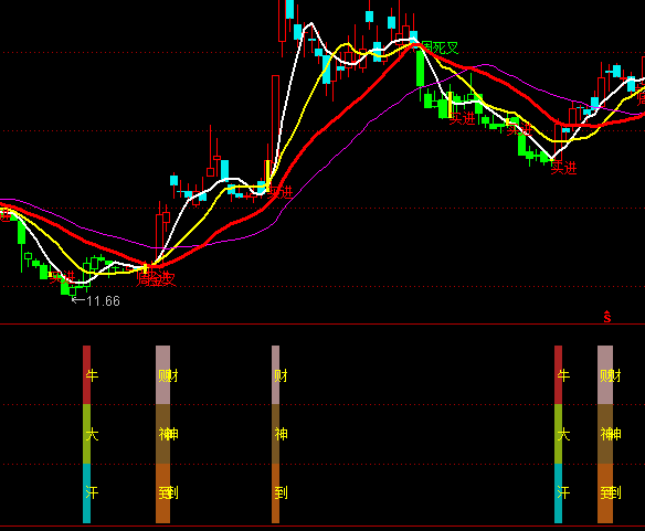 通达信牛大汗财神到买点指标公式实例图解: