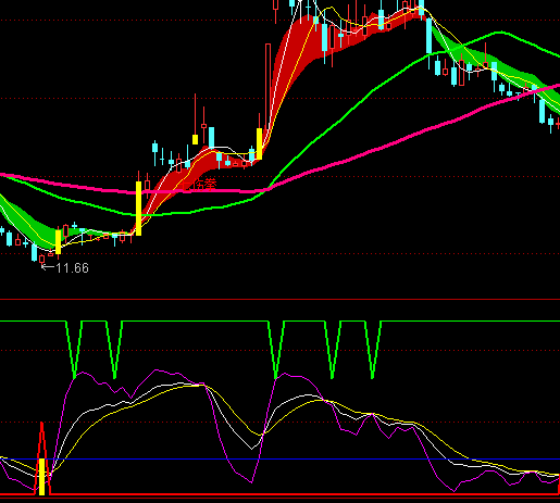 黄金:=((提纯 < (0)) AND ZXNH),COLORRED;