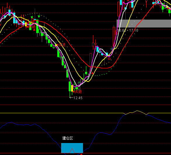 DRAWTEXT(FILTER(趋势<=4,15),30,'建仓区'),COLORWHITE;