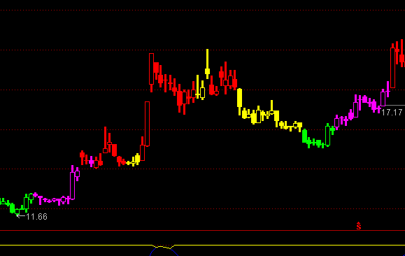 通达信仿麟龙四色谱主图多空买卖指标公式实例图解: