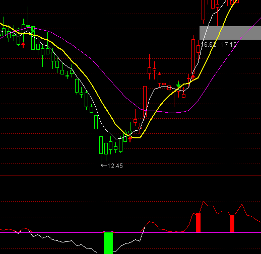 大底: STICKLINE(VAR1<-20 AND FILTER(VAR1> REF(VAR1,1),5),VAR1-5,0,7,0), , COLORYELLOW;