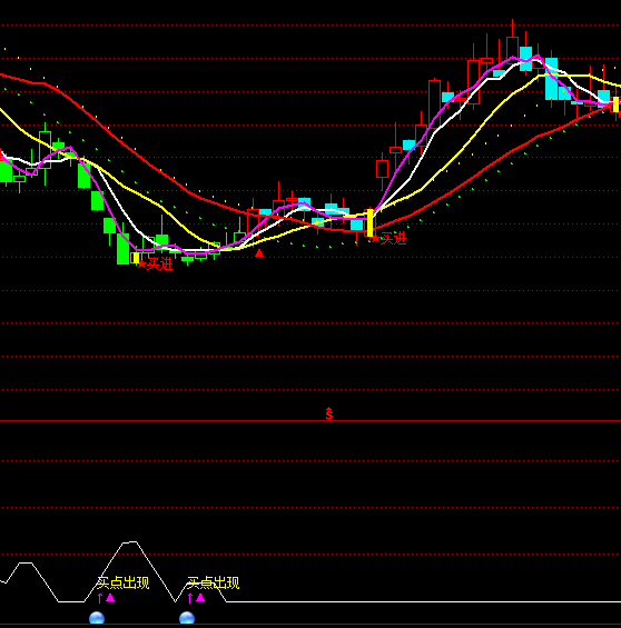 DRAWTEXT(CROSS(关注,1.2),关注*0.5-6,'↑▲'),COLORFF00FF;