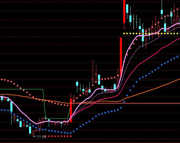 逼空线:IF(H>=REF(A0,BARSLAST(CROSS(A1X,0)))*1.3,REF(A0,BARSLAST(CROSS(A1X,0)))*1.3,DRAWNULL),COLORYELLOW,CIRCLEDOT;