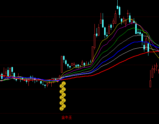 通达信瀑布金牛主图买点指标公式实例图解: